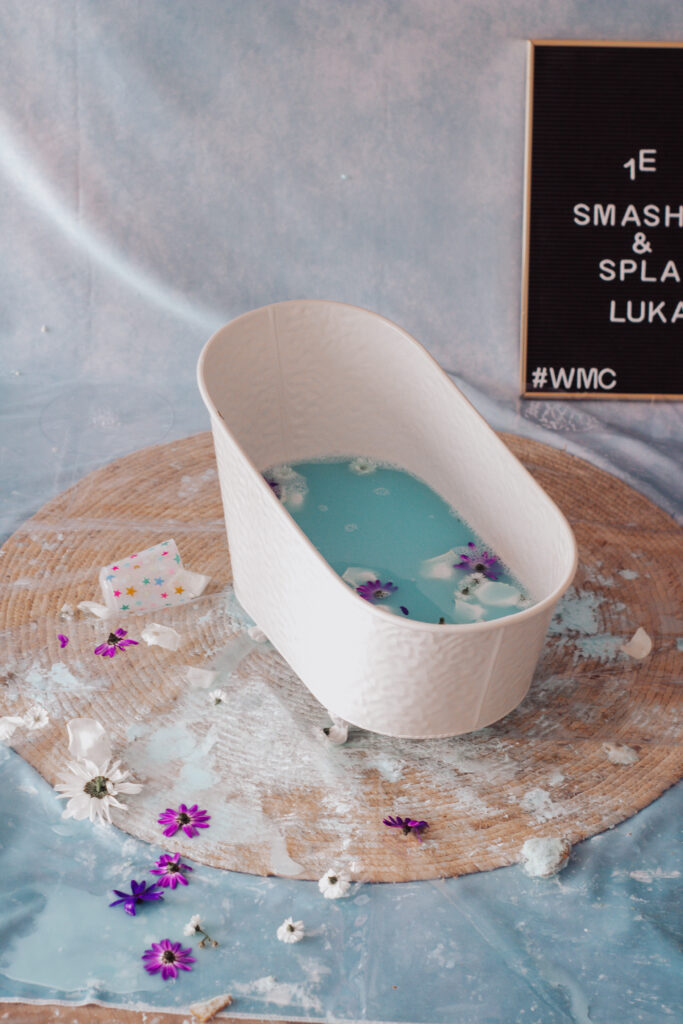 Na de taartpret volgt het Splash-gedeelte: een badje vol warm water, schuim en plezier!